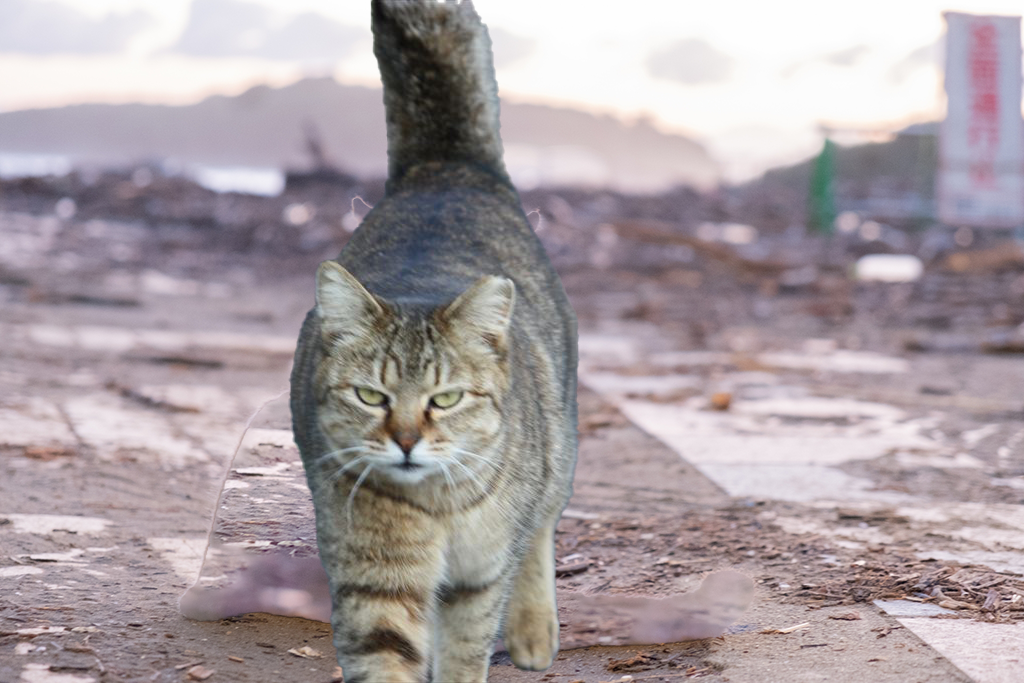 強風と大雨で荒れた日の翌朝、地域猫達は雨風をどうやり過ごしたかと餌場に行けば全員揃っていて一安心。